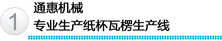江陰市通惠機械有限公司,專業生產紙杯瓦楞生產線,研發(fā)的中空紙杯專用瓦楞杯生產線,S楞、菱形、圓形、點狀形瓦楞紙杯專用生產線。同時,還生產單面瓦楞紙板生產線。